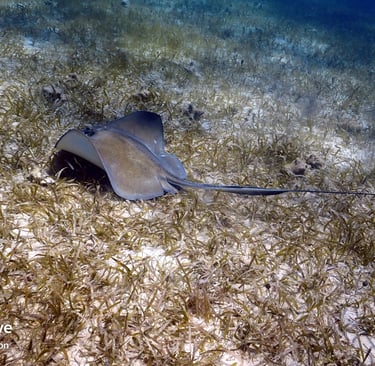 Graceful Southern Stingrays lying on the sandy bottom