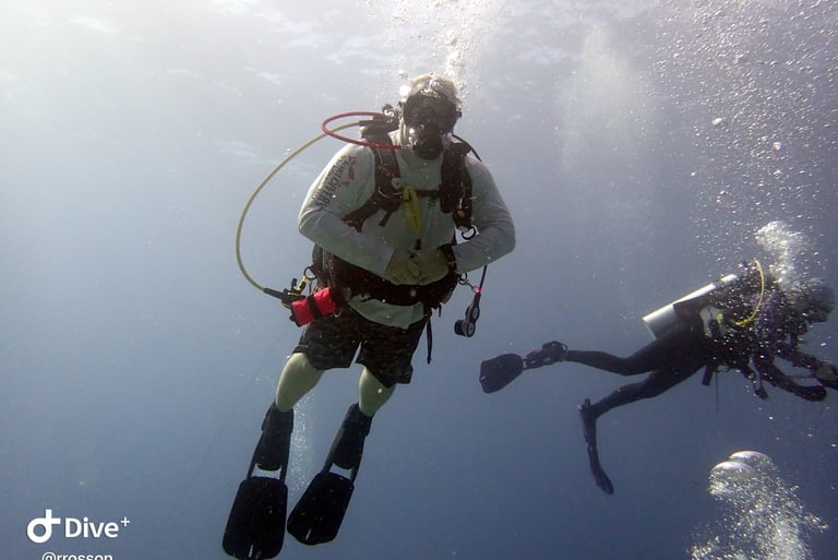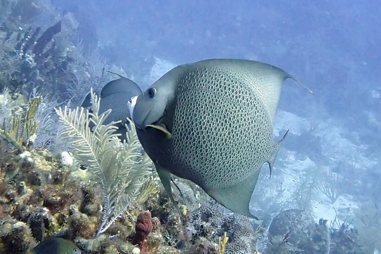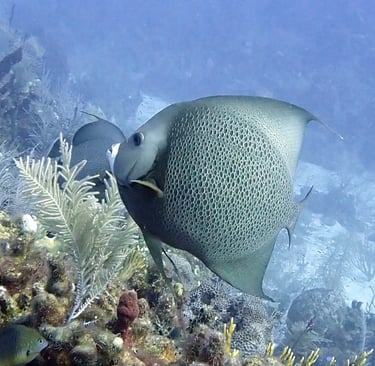 As part of the week's dives, we took a trip to the famous "Big Blue Hole." Honestly, it wasn't the most impressive dive of the week. The dramatic drop-offs and crystal-clear waters were impressive, but it lacked the excitement we found in other spots. While it's a unique site, and we were glad to be able to check it off our bucket list, we found the marine life was far more abundant and interesting on the other local dives.