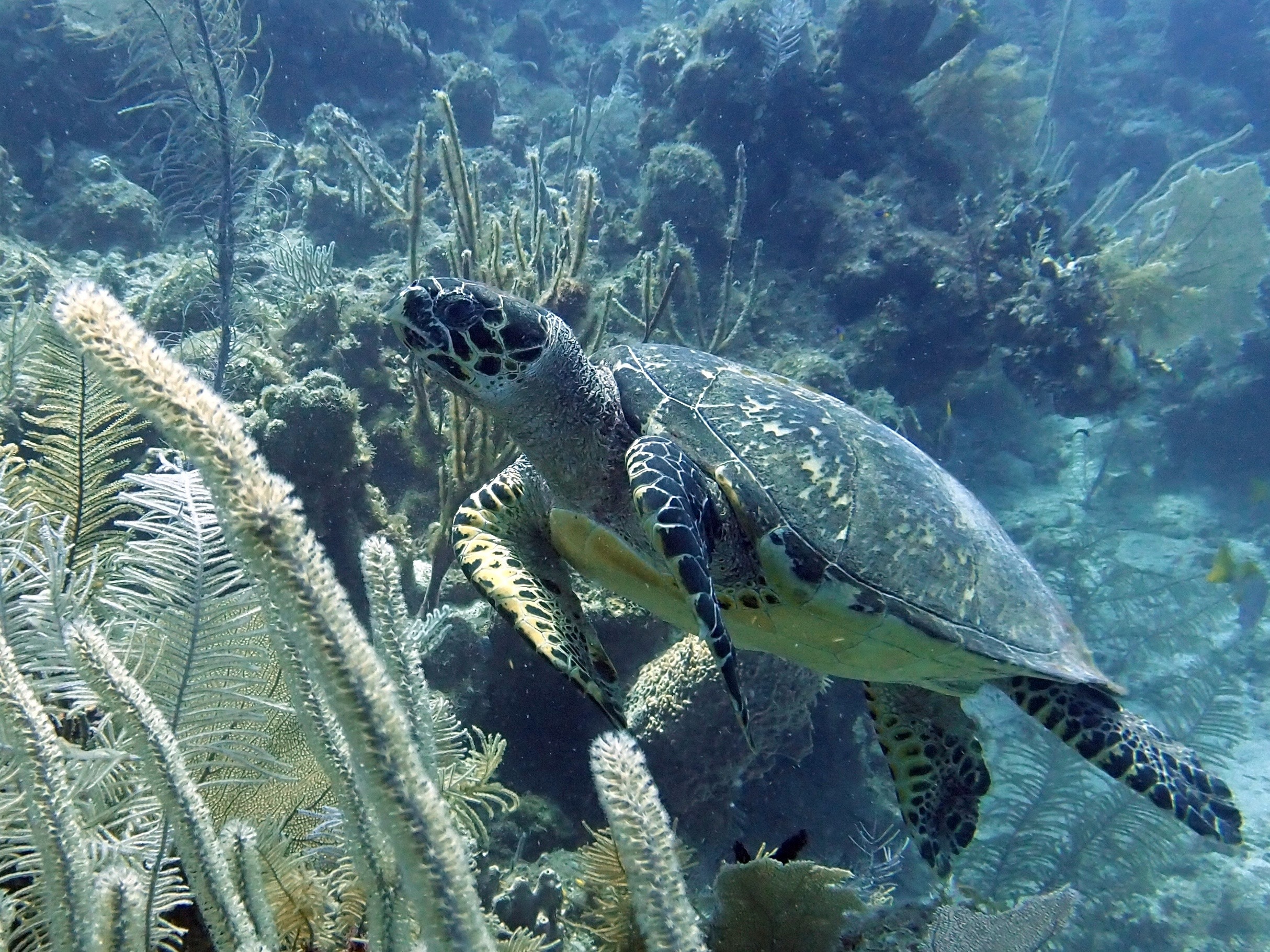 The diving at Turneffe Island was phenomenal. The coral reefs were healthy and vibrant, teeming with marine life on every dive. Our excellent dive guide, Hilario, and experienced boat captain, Harry, showed us some of the best spots. We were thrilled to see a huge variety of marine creatures, including: